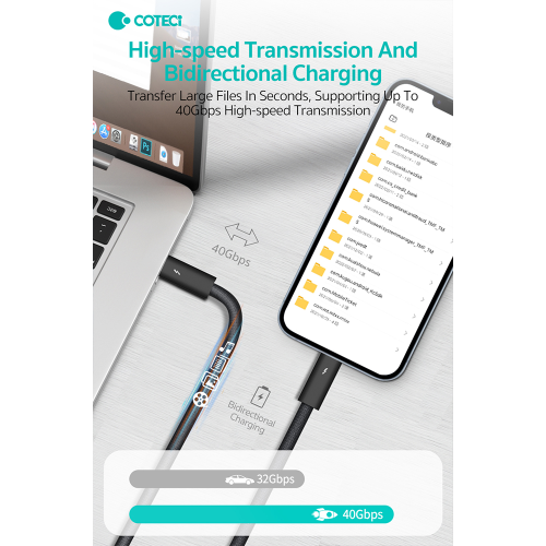 Data kabl Coteci Thunderbolt 87315 40Gbps 100W 8k PD Type C na Type C crni 0.3m