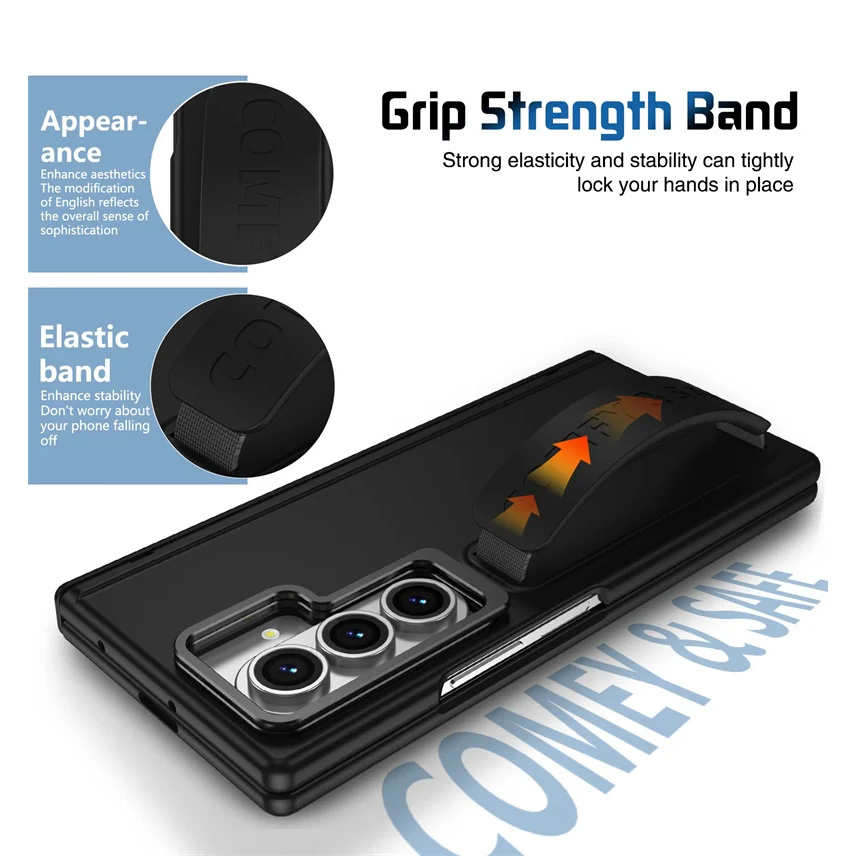 Elegantan spoj dizajna i zaštite — ova torbica je izrađena od kombinacije nežnog silikona, čvrste plastike i aluminijuma, pružajući odličnu otpornost uz prijatan osećaj u ruci. Prednji deo sadrži ugrađeno zaštitno staklo, dok masivna aluminijumska kamera-maskica ima magnetnu vezu i ujedno služi kao funkcionalan stalak. Na poleđini se nalazi i elastična traka u okviru ručke za sigurno držanje tokom korišćenja. Torbica u potpunosti pokriva i šarku telefona, čuvajući uređaj iz svih uglova bez kompromisa u praktičnosti.