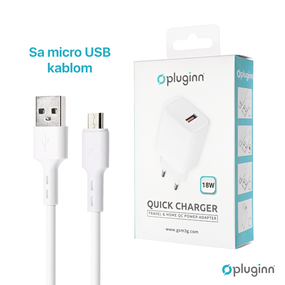 Kucni Punjac Pluginn AJ-18 QC3.0 18W sa micro USB kablom beli CE