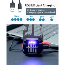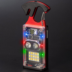 LED lampa privezak, otvarac za flase, univerzalni kljuc sa razbijacem stakla i srafcigerima, crna