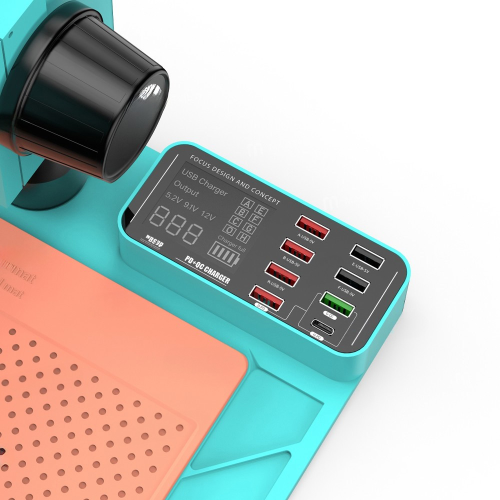 - Višestruki USB interfejsi integrisani u bazu omogućavaju napajanje drugih USB dodataka i povezivanje mikroskopa sa ekranom